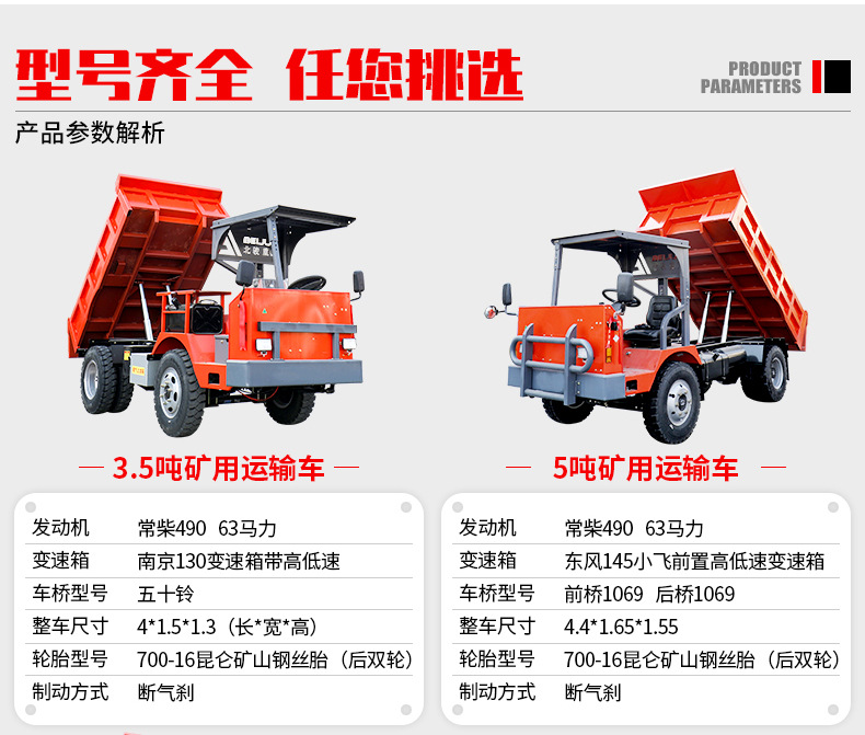 矿安认证井下运矿出渣车湿式制动四驱运矿车可定制井下矿洞出渣车