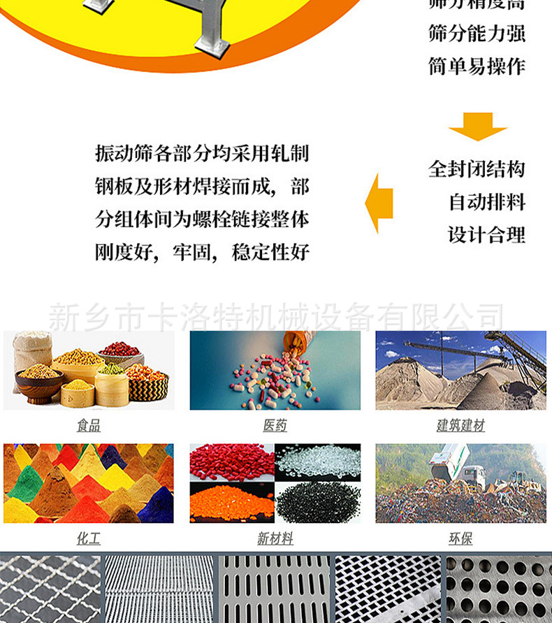 新乡市卡洛特机械设备有限公司发布的1025直线筛上振式砂石筛选机医药粉末长方形筛过滤除杂分级振动筛图集库