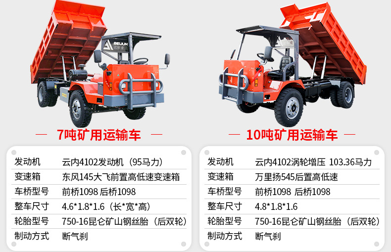山东北骏专用车销售有限公司发布的矿安认证井下运矿出渣车湿式制动四驱运矿车可定制井下矿洞出渣车图集库