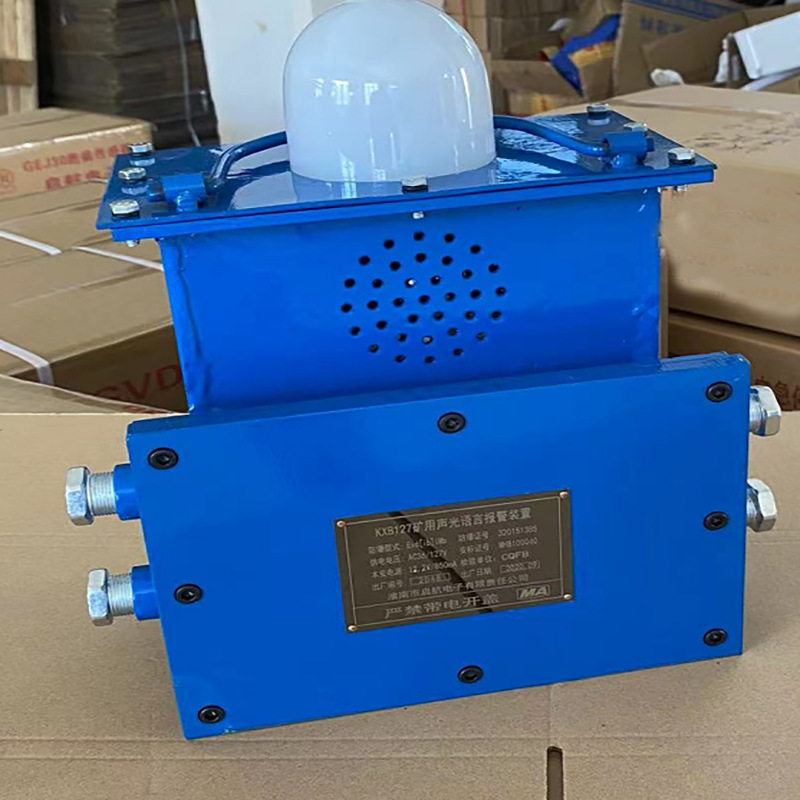 KXB127矿用隔爆兼本安型声光报警器主要用于煤矿井下含有爆炸性气体的场所,为运输巷道入口、出口或三叉口处打点和声光报警,也可作立井提升的声光报警用。KXB127矿用声光语音报警器,除具有打点及打点时灯光指示的功能,还具有语音提示。